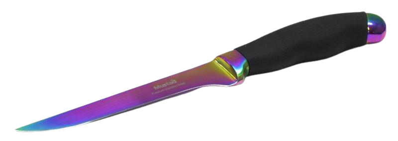 Общая длина его 28 см и масса 164 гр. Предназначен для филетирования рыбы. Выполнен из стали немецкого производства класса премиум. Обладает острейшей заточкой, потому для безопасной транспортировки предусмотрены полупрозрачные пластиковые ножны. По всей длине у них есть отверстия для слива воды, на пояс крепления не предусмотрено. Рукоятка габаритами 12,5 см имеет прорезиненное нескользящее покрытие и продуманную, удобную геометрию.