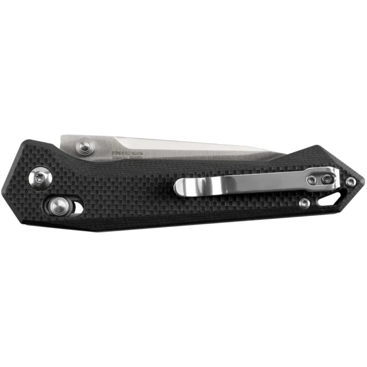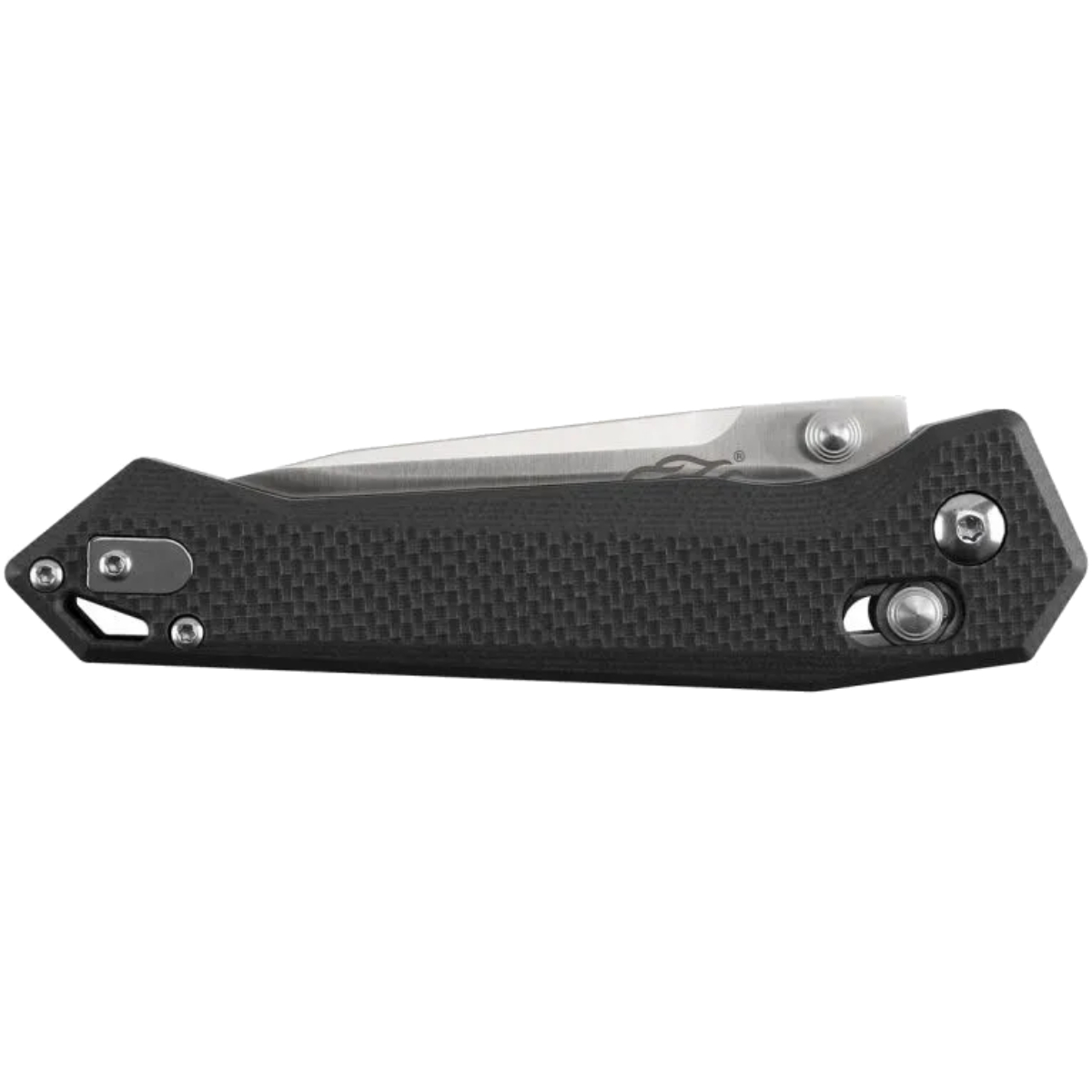 Рукоять выполнена из G10 — прочного, влагостойкого материала. Предусмотрены сменная клипса и отверстие под темляк. Модель сочетает функциональность, долговечность и безопасность в эксплуатации.