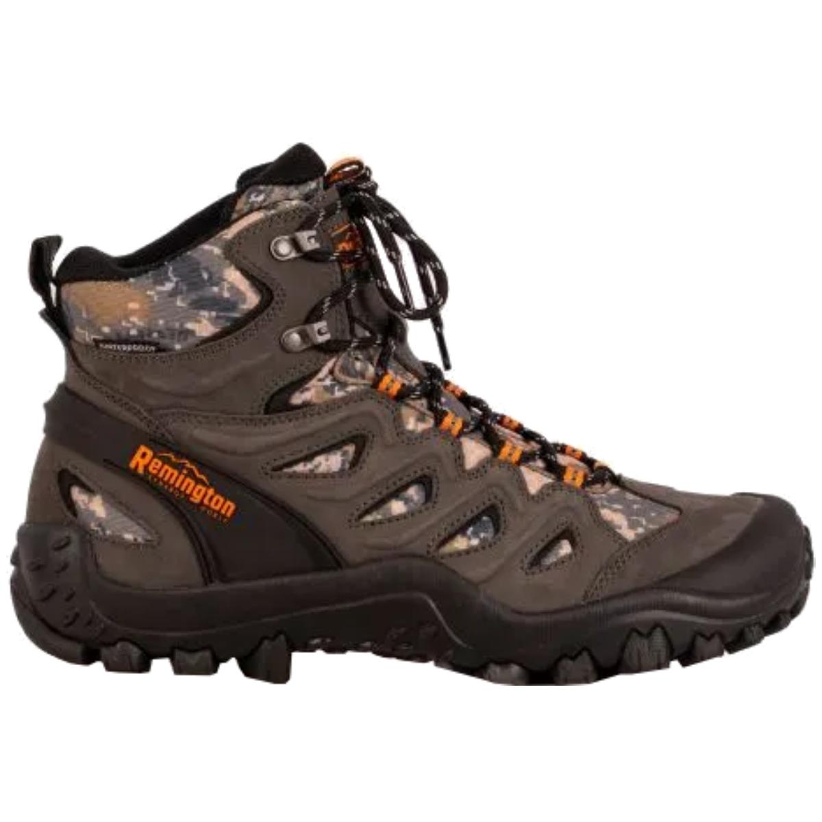 Камуфляж Figure гармонирует с экипировкой Remington. Вставки из TPU усиливают корпус ботинка, повышая устойчивость к износу. Подошва из ЭВА амортизирует шаг, снижая нагрузку на стопу при длительной ходьбе.