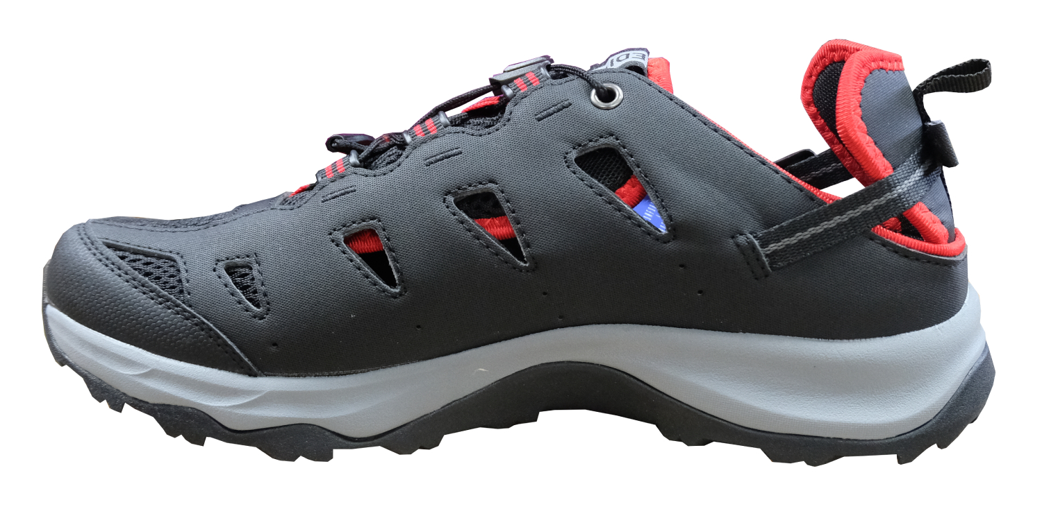 Оригинальный дизайн сандалий с аккуратной строчкой и сочетанием материалов поднимает спортивный стиль на новый уровень. Кроссовки легко надеваются и надежно фиксируются на ноге благодаря системе быстрой шнуровки FLS. Ремешок на пятке добавляет дополнительную фиксацию стопы и может быть загнут для альтернативного ношения.