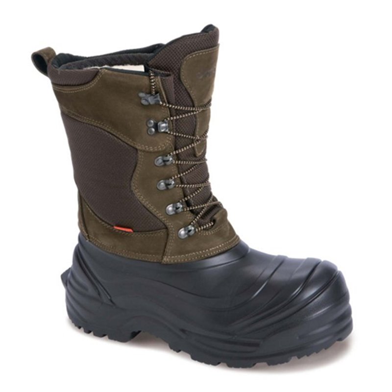 Нижняя часть сапога изготовлена из специального, суперлёгкого, термоизоляционного материала - кополимера EVA, что обеспечивает защиту Ваших ног от замерзания. Сапоги на шнурках, имеются крючки блакираторы и современные шариковые петельки для шнурков.