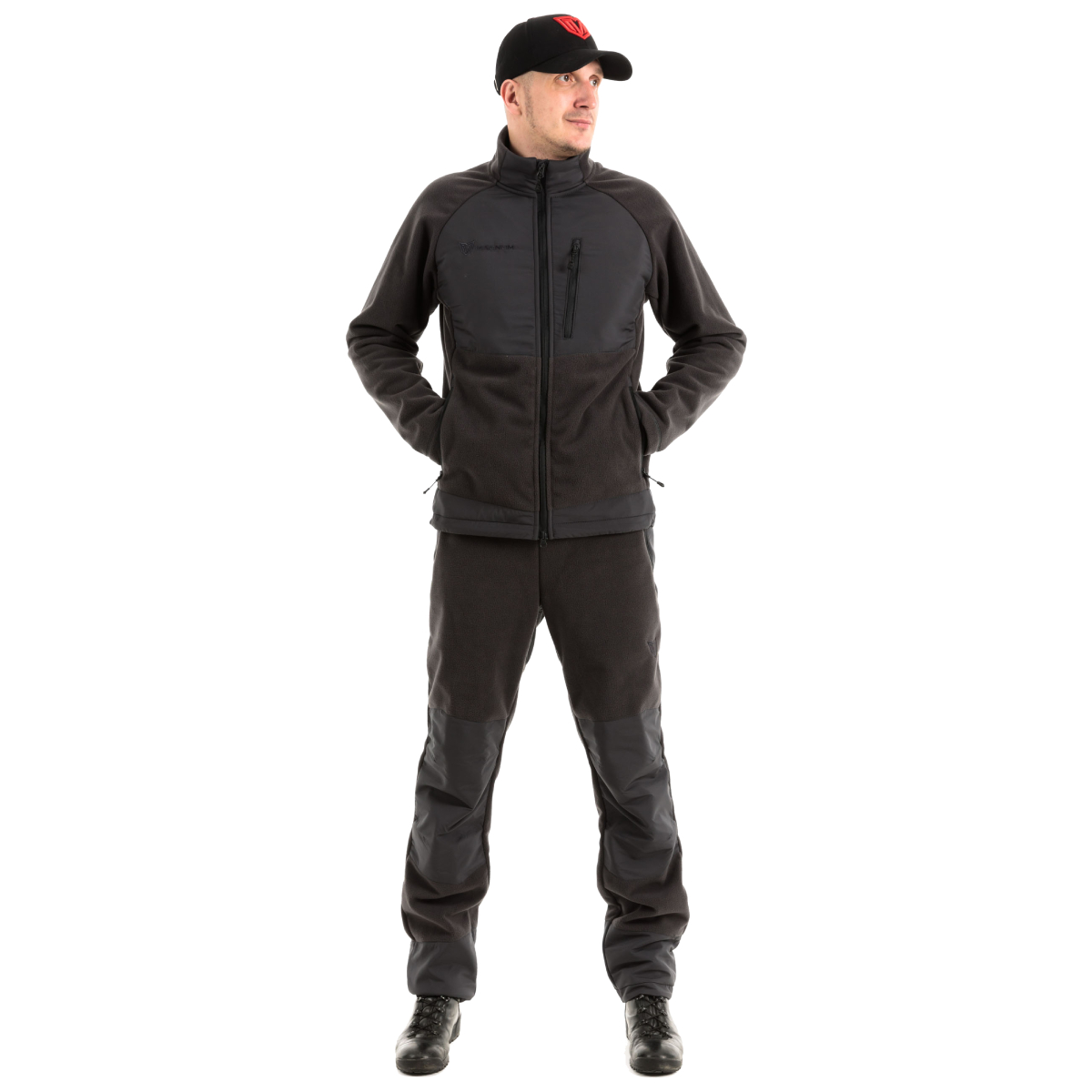 Для производства костюма используется двусторонний поларфлис плотностью 330 г/м² качества DTY, с антипиллинговой обработкой обеих сторон. Высокий ворс внутри и снаружи обеспечивает отличное сохранение тепла и долгосрочную сохранность внешнего вида.