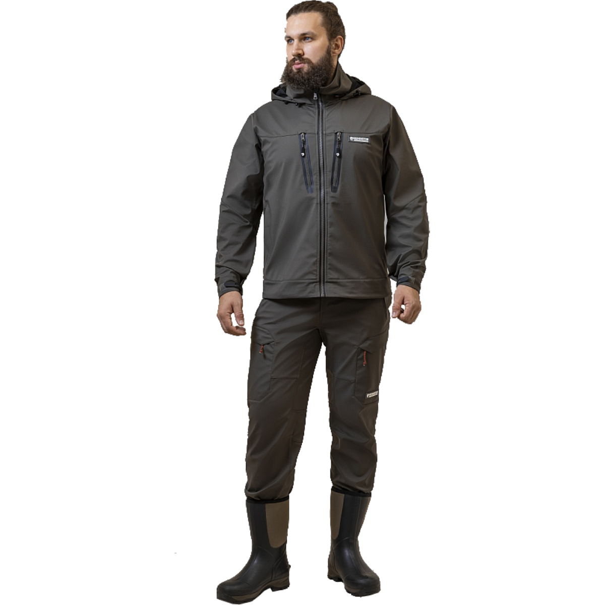 Молнии на брючинах упрощают надевание с любой обувью. Универсальный серый цвет делает костюм практичным, а конструкция — функциональным выбором для рыбалки в межсезонье и прохладную погоду.