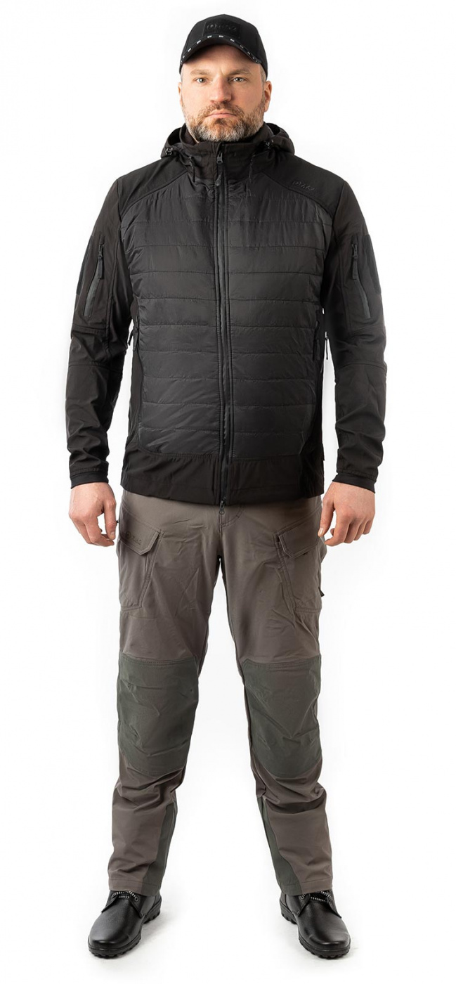 В куртке "Бастион" используется комбинированное утепление. На груди и спине добавлен слой утеплителя плотностью 80 г/кв.м. Такого показателя вполне достаточно для российских условий эксплуатации осенью или весной. Температура комфорта для «Бастиона» составляет +10°С.