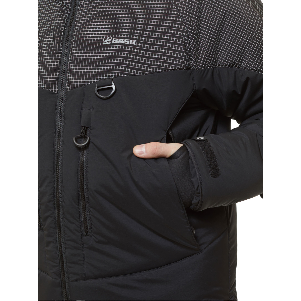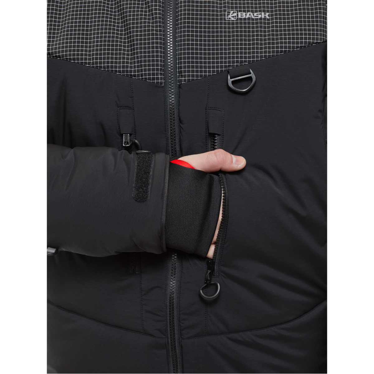 Куртка оснащена объёмным тёплым капюшоном, который можно использовать с каской, и высоким утеплённым воротником для защиты от холода. Центральная молния с системой Zip Garages предотвращает попадание влаги и снега, а эластичные манжеты-полуперчатки и регулируемый низ рукавов с липучкой Velcro® обеспечивают дополнительную теплоизоляцию.