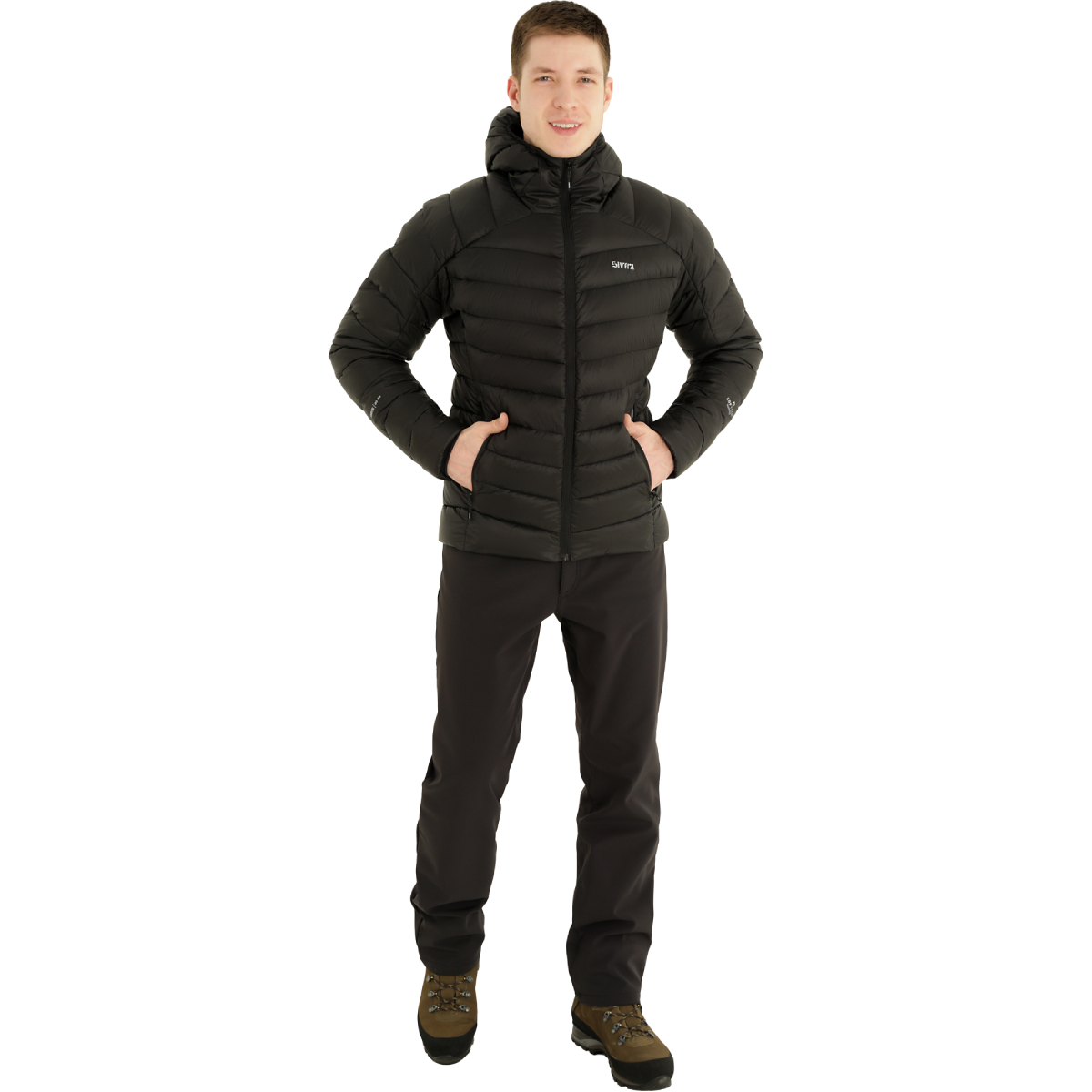 Куртка оснащена регулируемым капюшоном, эластичными манжетами и шнурком на поясе для защиты от ветра. Центральная молния снабжена внутренней планкой, а боковые карманы закрываются на молнии. Модель рассчитана на температурный режим от 0°С до -20°С в зависимости от активности и комплектуется чехлом для транспортировки.