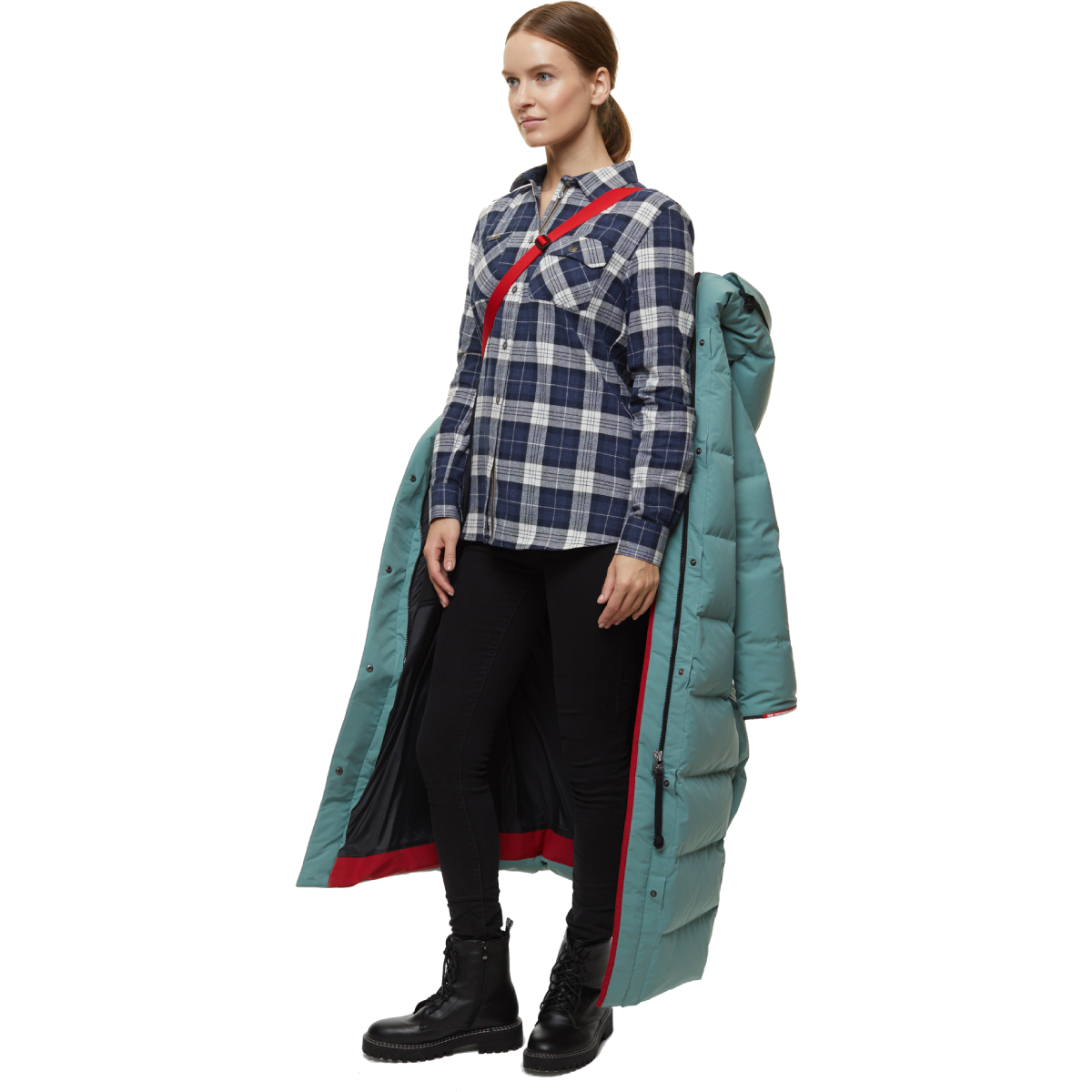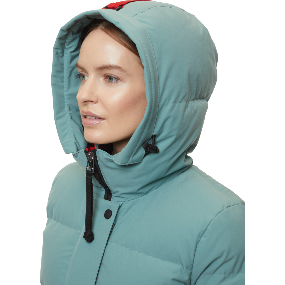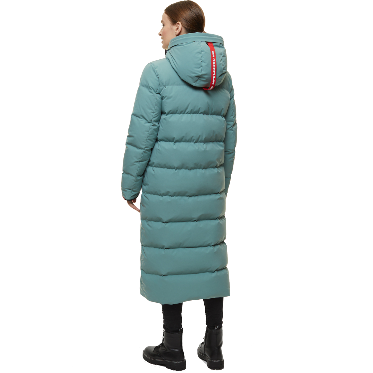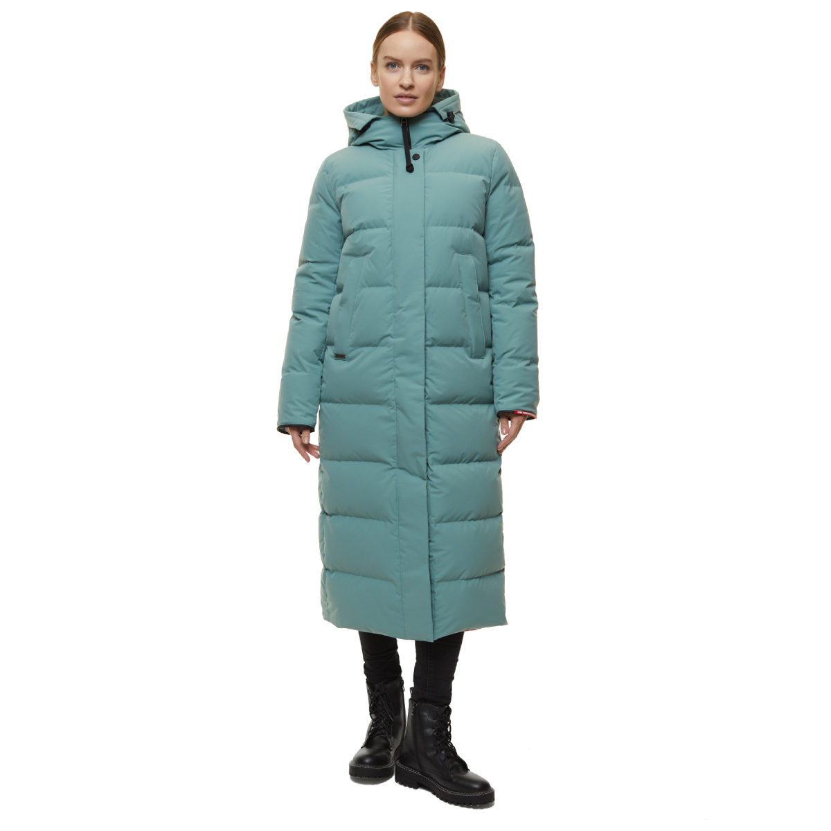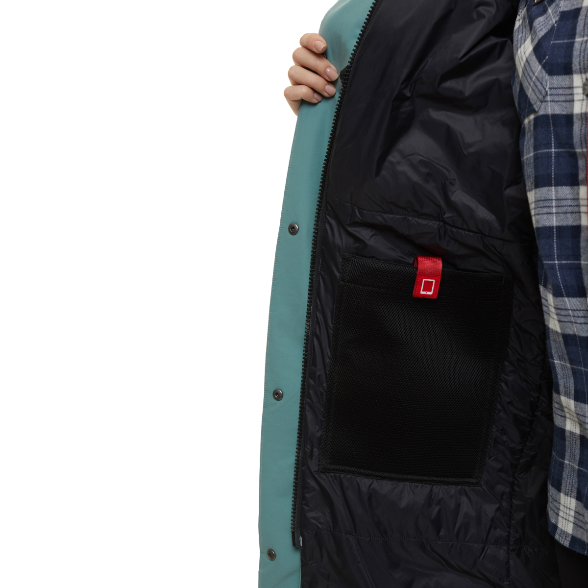 Пальто оснащено центральной двухзамковой молнией, ветрозащитными утепленными планками и объемным регулируемым капюшоном с ветрозащитным тубусом. Для дополнительного удобства предусмотрены два теплых боковых кармана на молнии и внутренние карманы, включая один на молнии и один из 3D сетки для устройств.