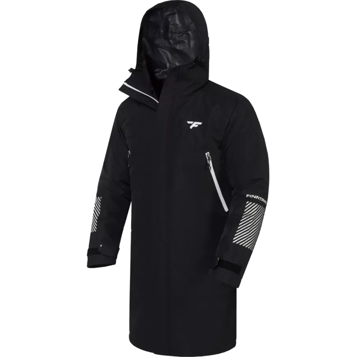 Прямой крой, удлинённая спинка и капюшон с ламинированным козырьком обеспечивают комфорт. Плащ дополнен внешними влагозащитными карманами, съёмным карманом-сумкой и светоотражающими элементами для безопасности в темноте.