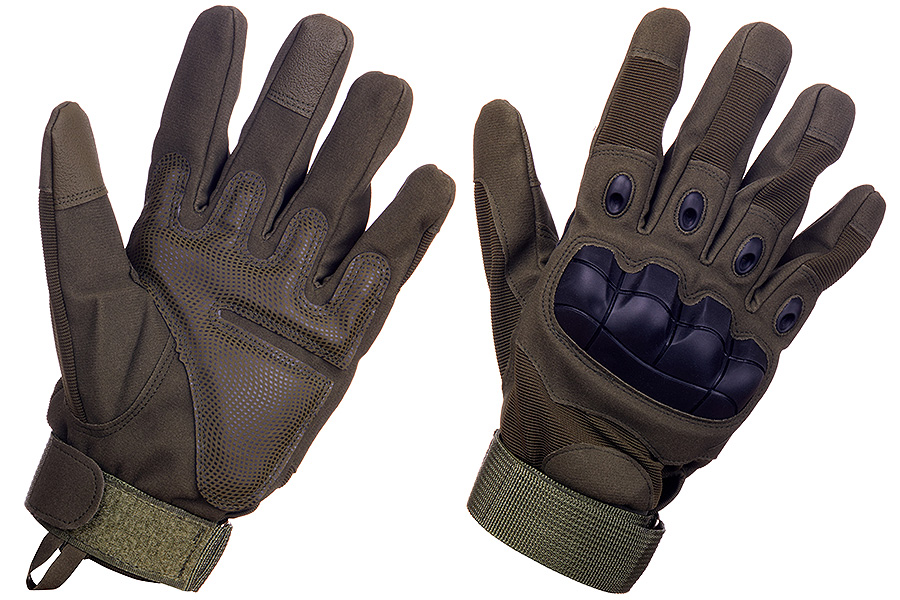 На внешней стороне перчаток расположен «кастет» - специальные вставки из эластичного пластика, которые обеспечивают защиту суставов при ударах или падении, и при этом оставляют пальцам высокую подвижность. Также, смягчающие вставки имеются и на ладони. Эргономичное расположение внешних и внутренних защитных элементов позволяют пользователю хорошо контролировать оружие, не стесняют движений в том числе и «стрелкового» указательного пальца.