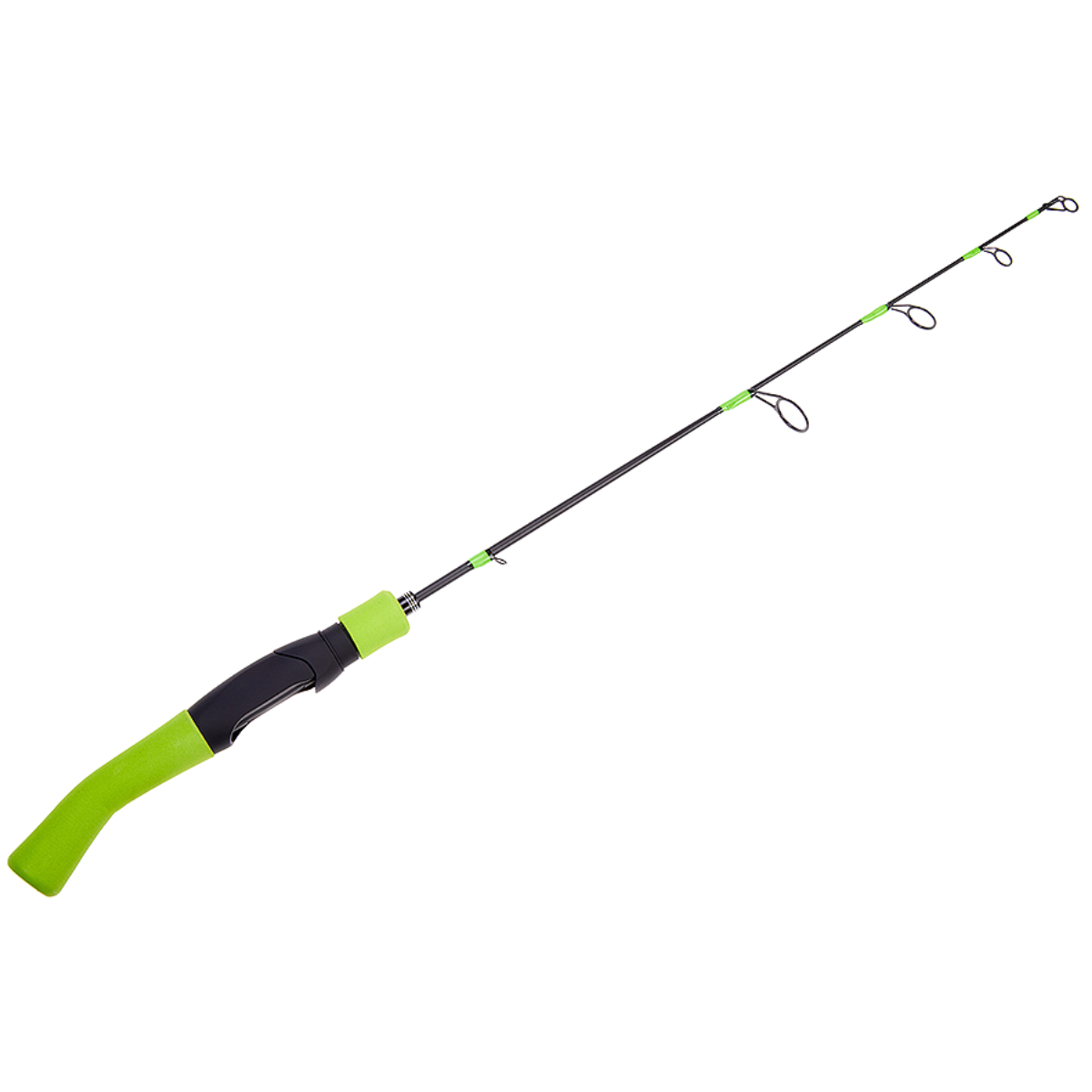 Рукоятка пистолетной формы из теплого материала HARD EVA обеспечивает комфорт даже в холодных условиях. Передняя гайка катушкодержателя добавляет удобства. Ярко-зеленая рукоятка делает удочку легко заметной на снегу и льду, что особенно полезно зимой.