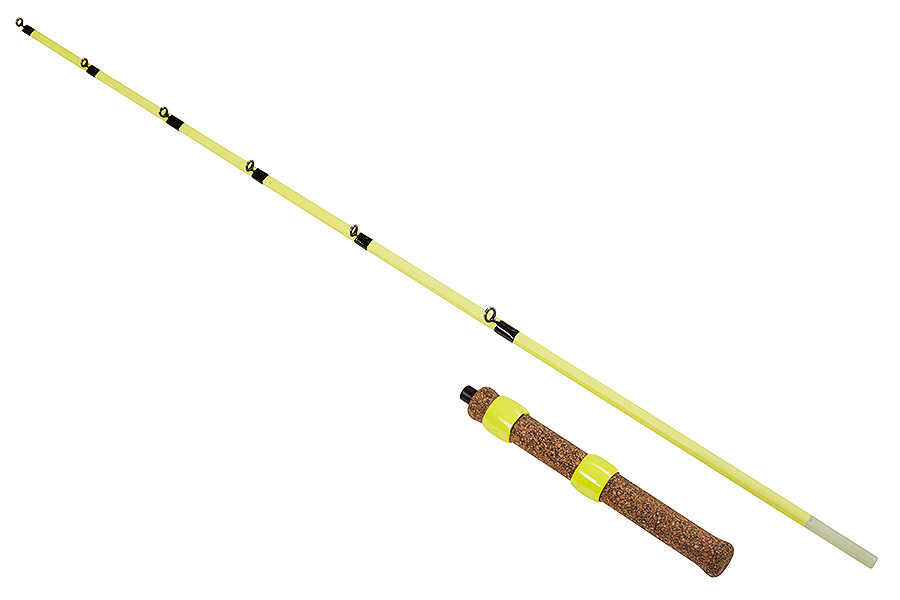Двусоставное штекерное удилище с рукоятью из пробки и зажимным катушкодержателем.
