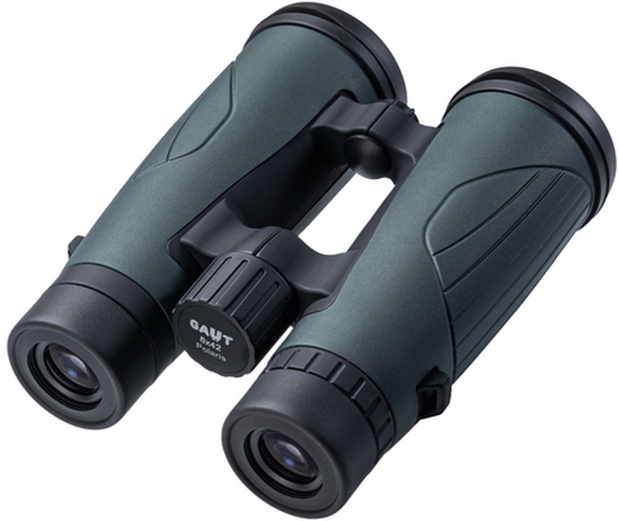 Многослойное просветление линз GAUT Polaris 8x42 повышает светопропускание бинокля. Оптика на roof-призмах изготовлена из стекла BK-7. Резкость настраивается с помощью барабана центральной фокусировки, кольцо на окуляре позволяет регулировать диоптрии. Корпус сделан из пластика, на оптических трубах есть рельефные вставки, повышающие надежность хвата. Откидные крышки защищают объективы от повреждений и попадания влаги.