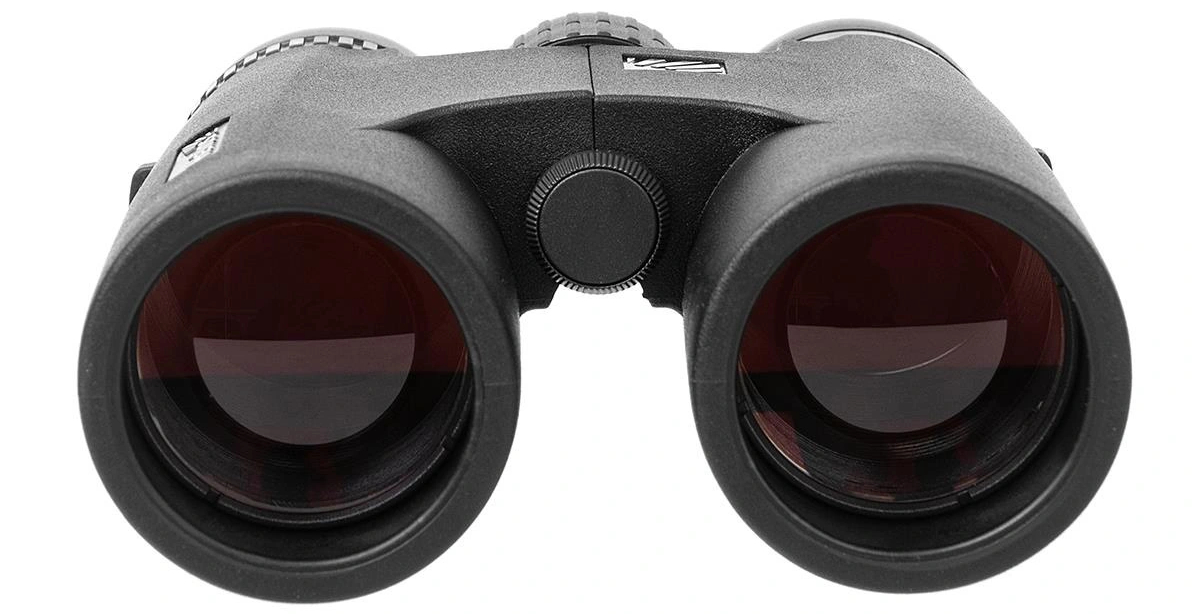 У бинокля большая площадь края с противоскользящей зубчатой поверхностью сбоку, окуляр диаметром 20 мм с линзой объектива диаметром 42 мм, поверхность всех линз покрыта широкополосной антибликовой пленкой.