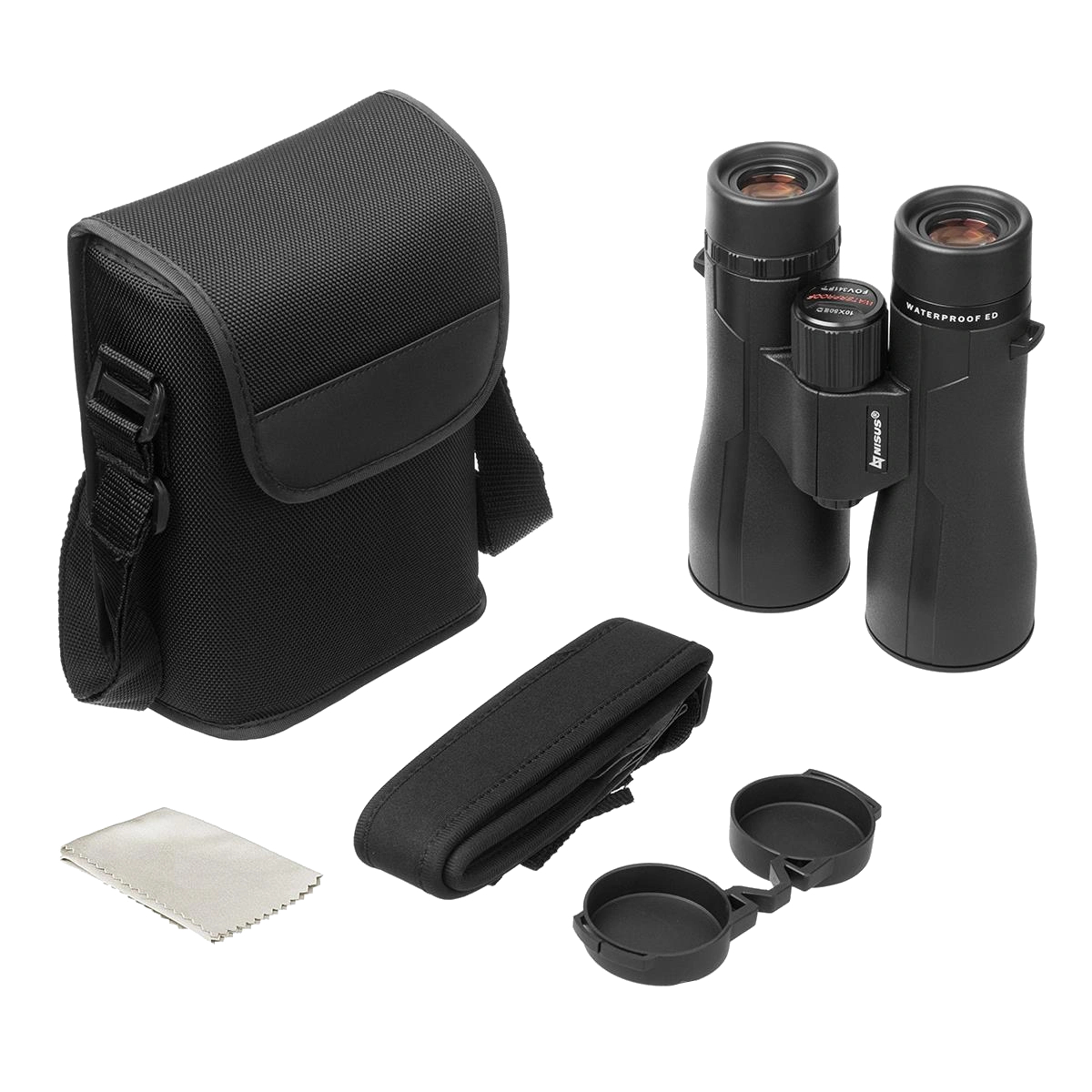 Объектив ED 50 мм обеспечивает высокую передачу цветов. Водонепроницаемость по стандарту IPX8 гарантирует защиту от влаги на глубине более 1 метра, что делает этот бинокль идеальным для использования в любых условиях.