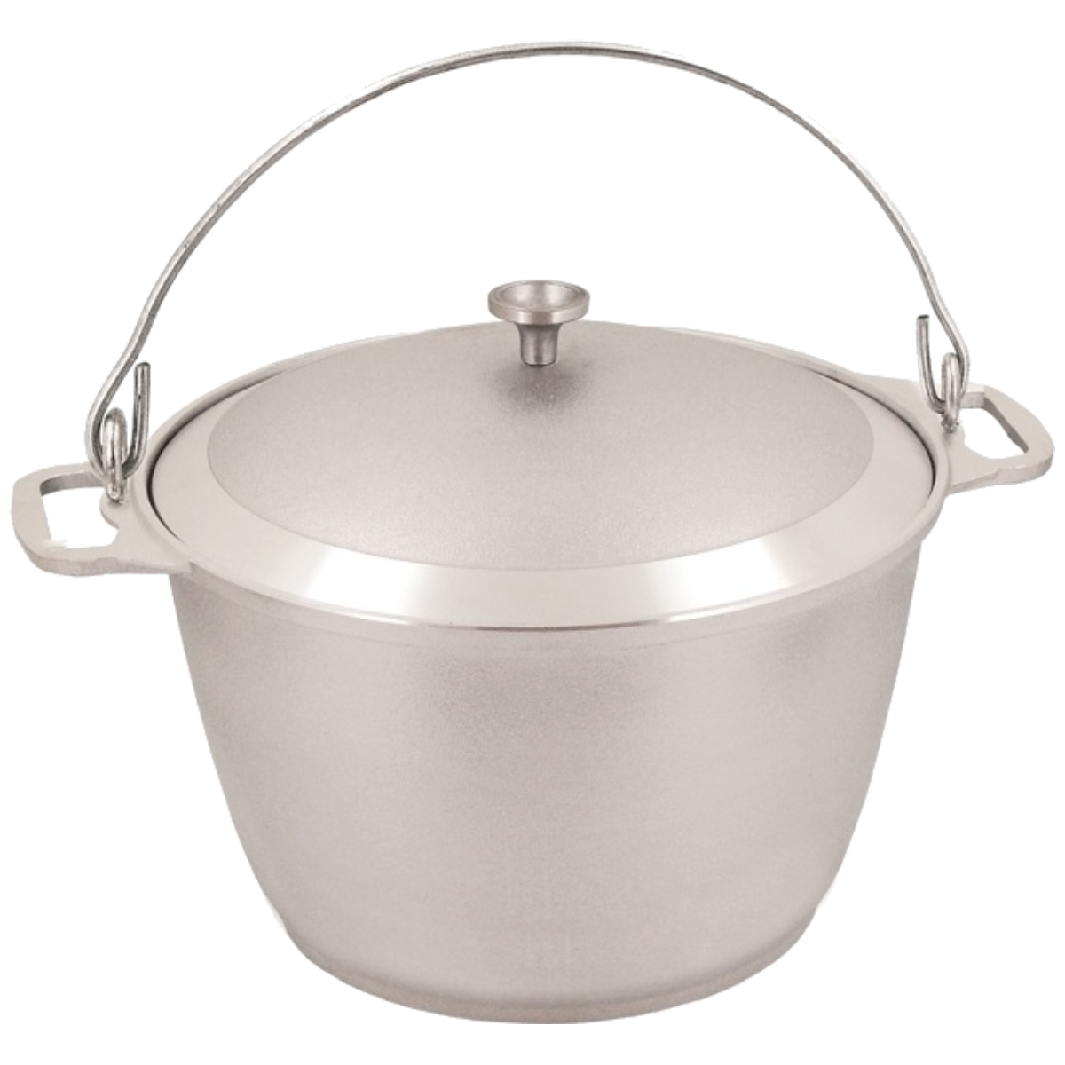 Литая алюминиевая посуда - идеальное соотношение демократичной цены, традиционного дизайна и проверенного покупателями качества. Эта посуда подходит для готовки в любых условиях, в том числе и на открытом огне. Для подвешивания над огнем имеется крепкая ручка, которая прочно крепится к котлу.