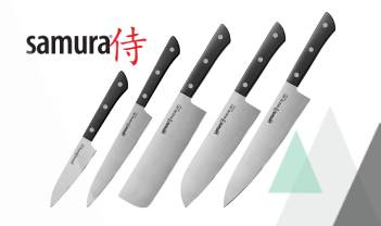 - Главное достоинство ножей Harakiri — самая экономичная линейка Samura. Изделия этой серии отличаются тонким лезвием из высокотехнологичной стали AUS-8 и твердостью 59HRC. Двусторонняя заточка ножей Harakiri на водных камнях, обеспечивает долговечность и остроту лезвия. Обладают небольшим весом, качественные и функциональные. Удобная рукоять из высокотехнологичного ABS-пластика прекрасно «ложится под любую руку».