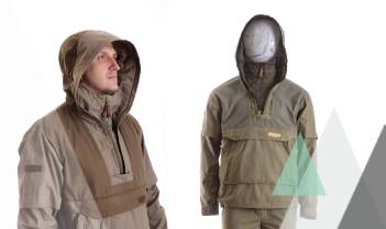 - Костюм имеет внушительный набор средств механической защиты: складки-ловушки на куртке и брюках, полностью съемная москитная сетка, противоэнцефалитная "юбка" и плотные манжеты на куртке и брюках.